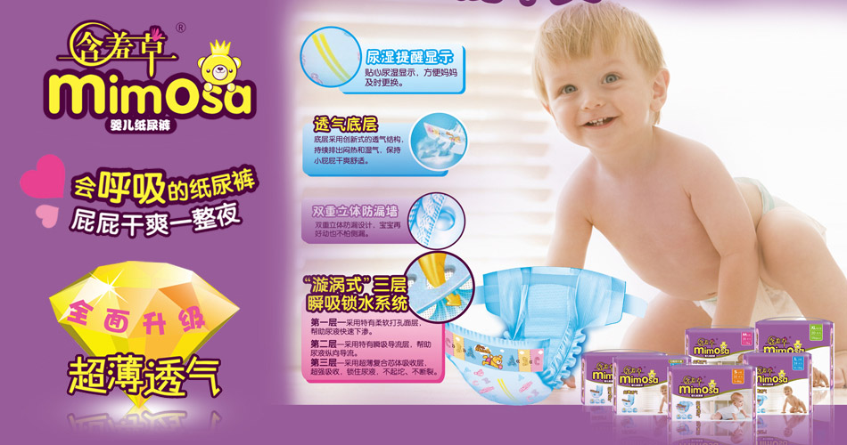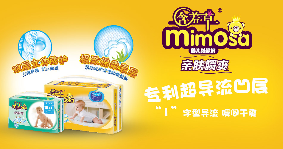 含羞草力求為您提供最優(yōu)質的木棉,吸收性最好的SAP,安全放心的食品級膠貼,在源頭為您把好關,全心全意從細節(jié)呵護您。從嬰兒紙尿褲到女性衛(wèi)生用品,再到成人護理用品,生命綿延不息,含羞草呵護不止!