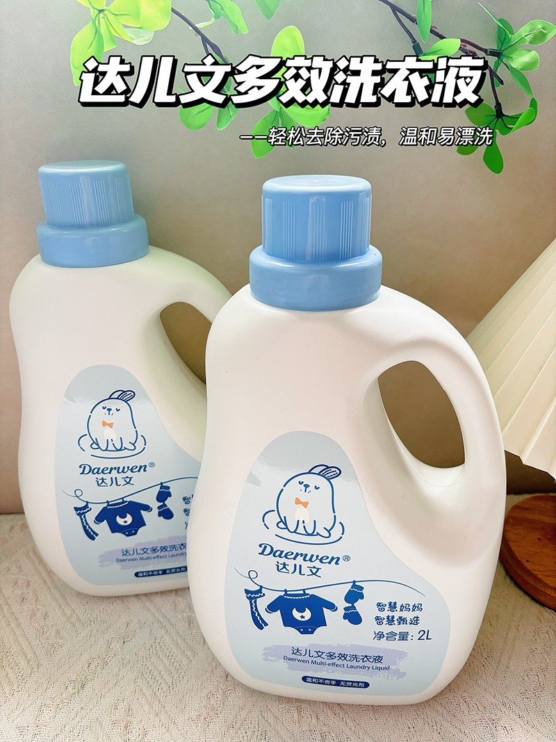 達兒文多效洗衣液,高效去污,洗后衣服潔凈柔軟。深層去污,溫和柔順,植物萃取。