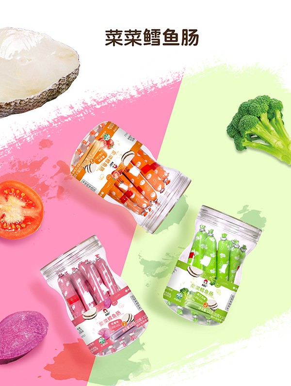 果蔬妃【菜菜鱈魚腸】創(chuàng)新融合蔬菜與鱈魚肉,鱈魚加蔬菜,營(yíng)養(yǎng)更全面,色澤誘人,配方安全,促進(jìn)寶寶成長(zhǎng)發(fā)育,有番茄、西蘭花和紫薯三種口味可選!