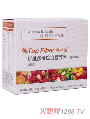 多補達兒童型膳食纖維采用配方研發(fā)而成,通過國家安全檢驗。每包多補達纖維等于555.5克香蕉,又等于833.3克芹菜,還等于1250克西紅柿。