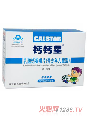 鈣鈣星乳酸鈣顆粒專門針對(duì)對(duì)鈣的需求而設(shè)計(jì)。小兒補(bǔ)鈣,吸收是關(guān)鍵——乳酸鈣有良好的溶解性和吸收性,是優(yōu)質(zhì)鈣源;酪蛋白磷酸肽(CPP)能有效促進(jìn)人體對(duì)鈣、鐵等營(yíng)養(yǎng)素的吸收和利用;酪蛋白磷酸肽(CPP)來源于牛乳蛋白質(zhì),不會(huì)對(duì)人體產(chǎn)生任何毒副作用;不添加色素、香精和防腐劑。