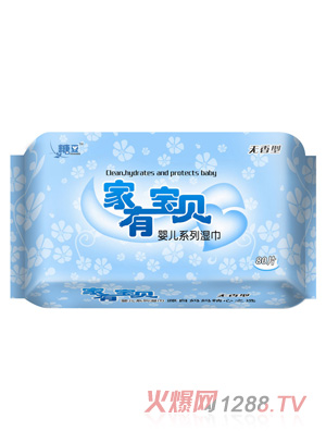 家有寶貝無香型濕巾主要成分:天然潤膚露、高級水刺無紡布、甘油、丙二醇、RO精致純凈水。在炎熱的夏天,可隨時清潔殘留在bao--bao口手及身體其他部位的細菌,特含潤膚露,給bao--bao健康雙重健康天然呵護。