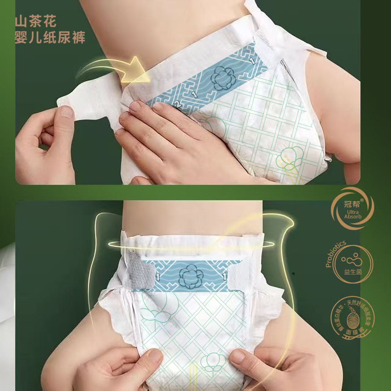 在產(chǎn)品外觀上,山茶花益生菌尿褲以純白山茶花為視覺核心,搭配清新綠葉元素,包裝設(shè)計盡顯自然質(zhì)感,在母嬰渠道中極具辨識度,能快速抓住消費者目光,為終端銷售賦能。