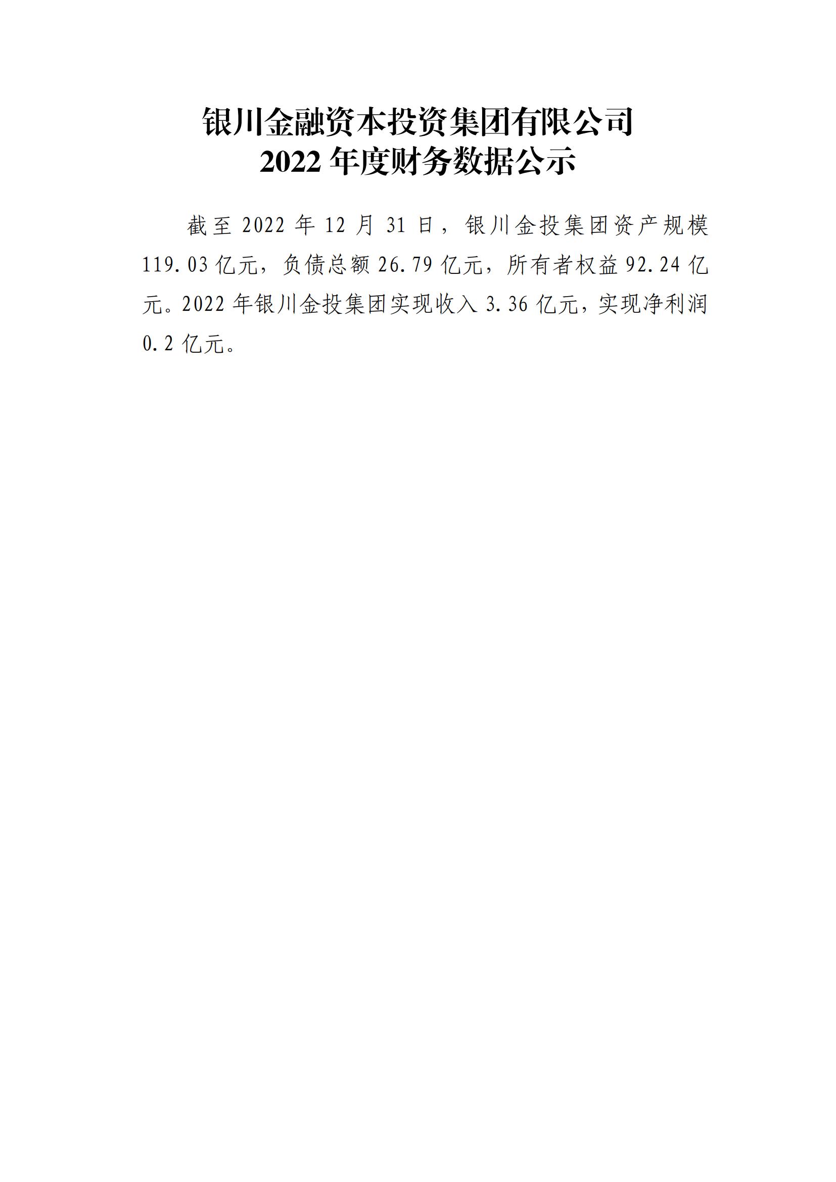 銀川金融資本投資集團(tuán)有限公司2022年度財(cái)務(wù)數(shù)據(jù)公示